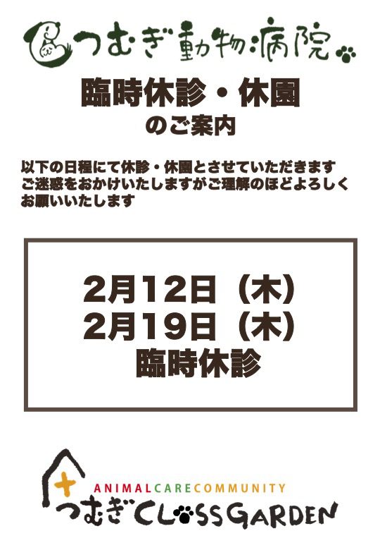 以下の日程で臨時休診、休園とさせていただきます ご迷惑をおかけいたし...