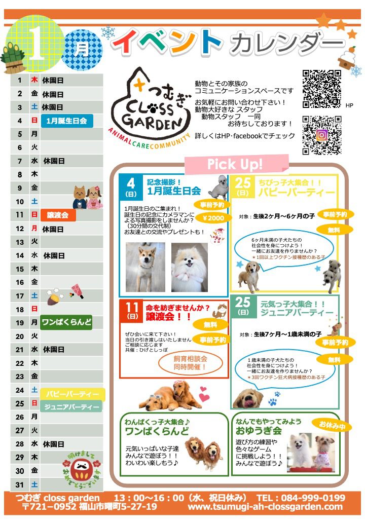 1月のイベントカレンダーが完成しました☆