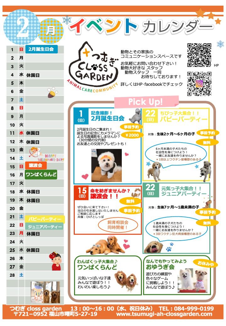 2月のイベントカレンダーが完成しました☆