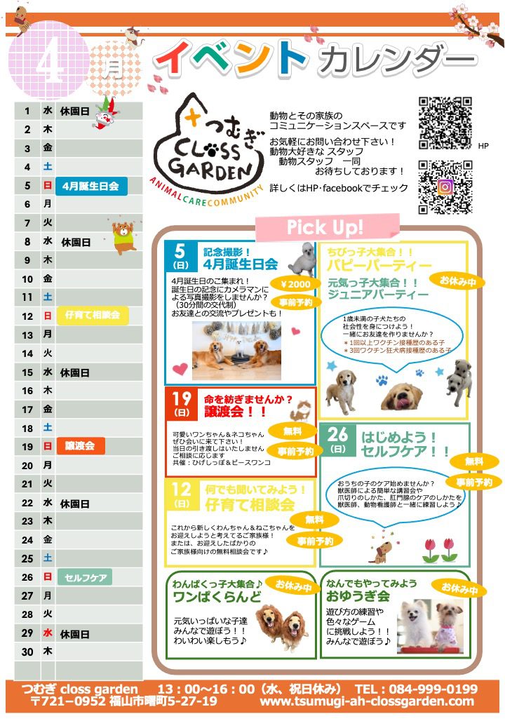 4月のイベントカレンダーが完成しました☆