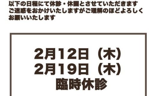 以下の日程で臨時休診、休園とさせていただきますご迷惑をおかけいたしま...